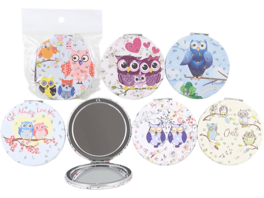 Zrcátko kulaté skládací sovičky 7cm 6 druhů v sáčku