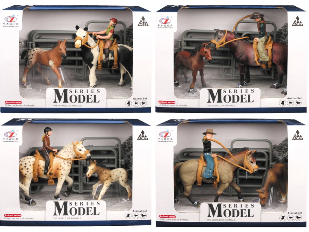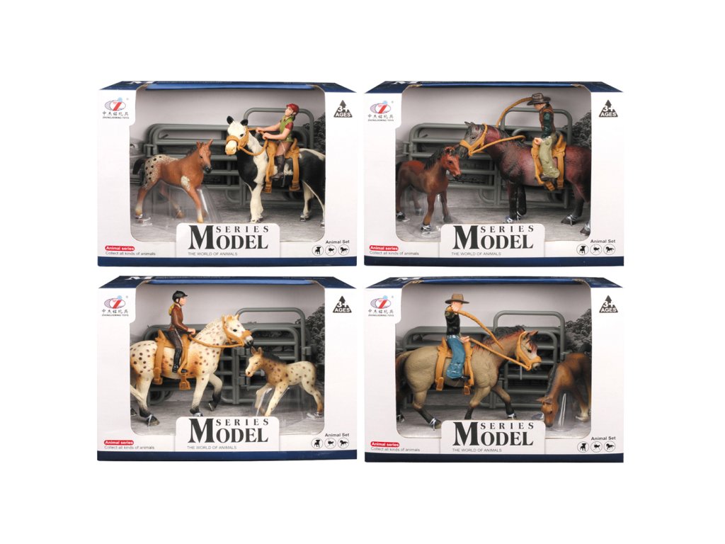 Zvířátka z farmy - Set koně s jezdcem a hříbátkem 4 druhy