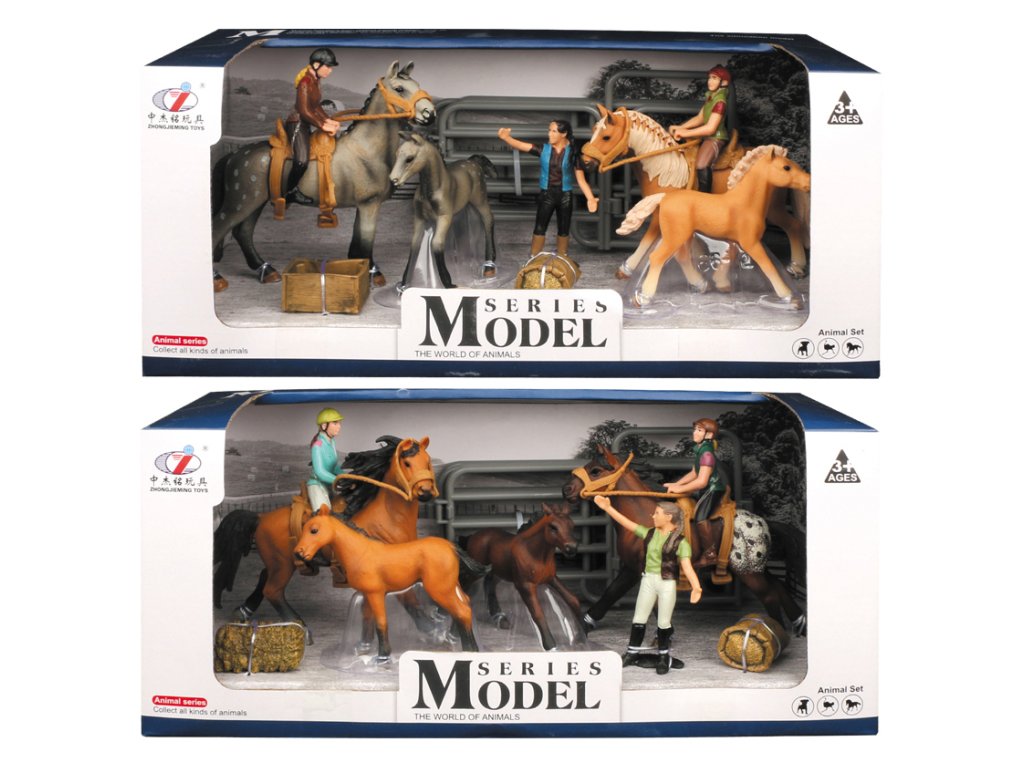 Zvířátka z farmy - Set koní s jezdcem a příslušenstvím 2 druhy