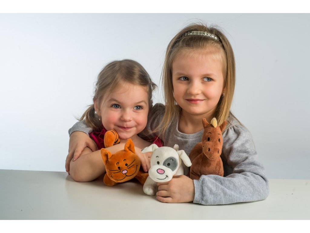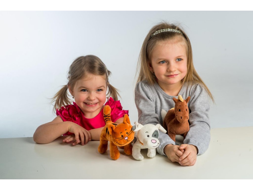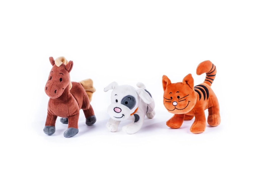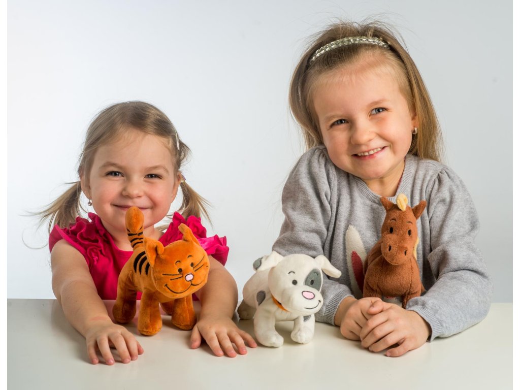 Každé zvířátko po zmáčknutí bříška vydává charakteristický zvuk a děti si s nimi tak užijí spoustu legrace a naučí se poznávat, jak mňouká kočička, jak štěká pejsek, nebo jak řehtá koník.