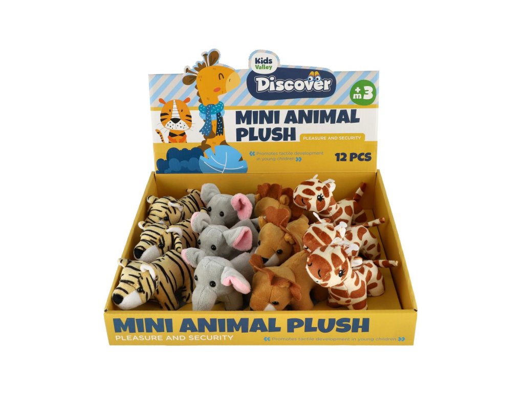 Zvířátko safari/ZOO plyš 10-15cm 4 druhy 12ks v boxu 3m+
