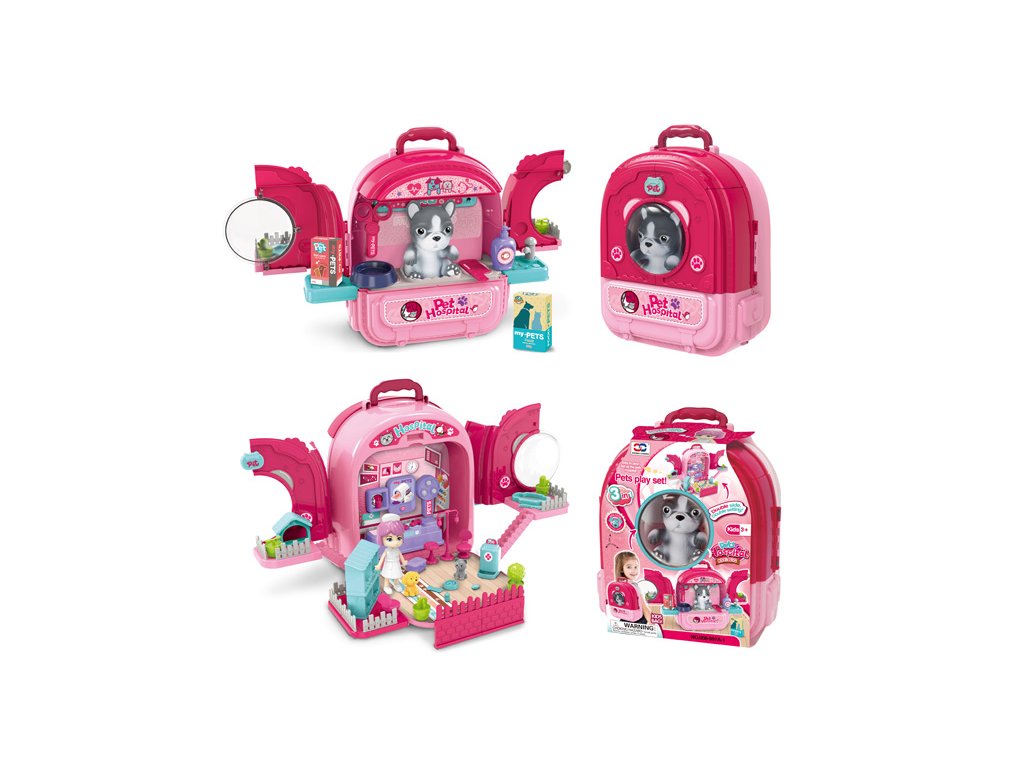 Zvířecí nemocnice v batohu 3v1: Splňte dětem sen stát se zvěrolékařem! Proměňte dětský pokoj v opravdovou veterinární ordinaci Představte si radost ve tváři Vašeho dítěte, když rozbalí tento úžasný batoh plný veterinárního dobrodružství. Není to jen obyčejná hračka - je to vstupní brána do světa péče o zvířátka! Proč je tato zvířecí nemocnice výjimečná? - 3v1 funkce: Slouží jako přenosná ordinace, batoh na hraní i úložný prostor - Praktické rozměry: 50x35x30 cm - ideální velikost pro malé veterináře - Oboustranné otevírání: Snadný přístup ke všemu vybavení - Kompletní výbava: Vše, co malý veterinář potřebuje Co všechno v batohu najdete? - Realistická figurka kočičky nebo pejska - Roztomilá panenka zdravotní sestry - Miska pro zvířátka - Léčivé lahvičky - Další nezbytné vybavení veterinární ordinace - Množství drobných doplňků pro autentickou hru