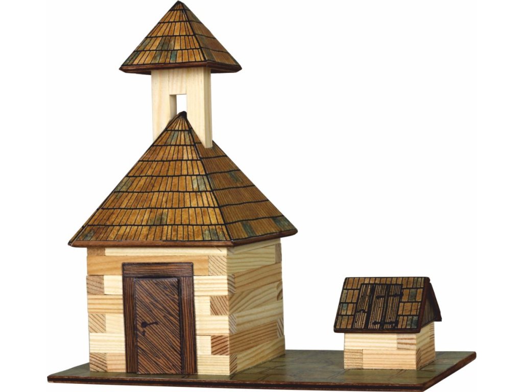 Dřevěná slepovací stavebnice Walachia - Zvonice a studna. Slepovací stavebnice Walachia jsou dřevěné modely domečků a staveb z Valašského kraje v měřítku 1:32. Základem jsou dřevěné hranolky 9x9 mm a k tomu jsou v sadě vždy všechny papírové doplňky - okna, dveře, střešní části atd. Pro lepení se používá lepidlo Herkules, není však součástí stavebnice. Přiložený je montážní návod a malé kapitoly z historie lidové architektury. Níže je označení obtížnosti číslem 1 - 5, přičemž 1 je nejlehčí. Rozměry: 9 x 9 x 17 cm Počet dílů: 68 Obtížnost: 3